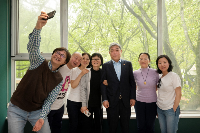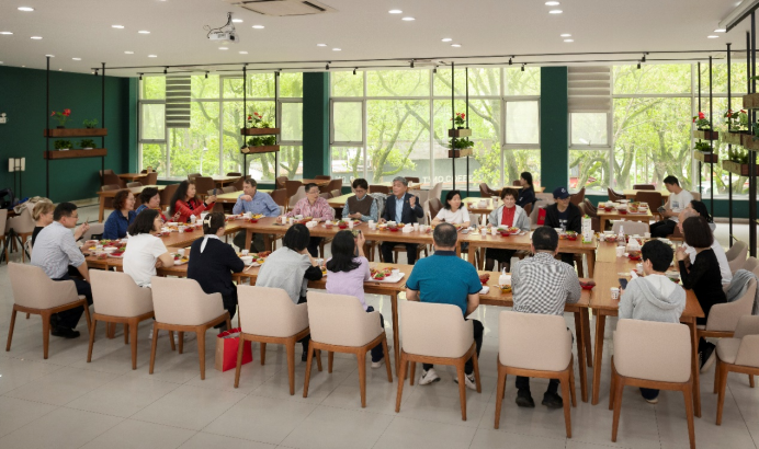 校友们回到阔别多年的学院,簇拥着远道而来的各位恩师,在“弦歌不辍传薪火,桃李春风盼君归”的喷绘下开心合影,畅叙离情。三十年未见,时光仿佛又回到了学生时代,记忆中的青春美好,岁月镌刻下的真挚情谊,涌上心头,浮于脸颊。