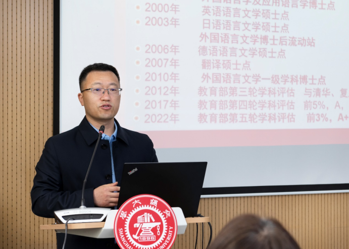随后,院长常辉向校友们简要介绍了学院近年来在人才培养、师资队伍建设、学术研究、学科发展等各项事业上的进步和成绩。他指出,学院近年来聚焦国家战略,人才培养水平持续提升,师资队伍建设成效显著,科研和社会服务成果丰硕,成绩斐然,已经迈入全国高校外语教育“第一方阵”。学院发展取得的进步离不开校友的关心支持和鼎力相助,他也殷切期待校友们能继续与学院同心同行,为学院发展献计献策,学院也将时刻关注、关爱、服务和支持校友们的发展,做每一位校友成长的坚强后盾和温暖港湾!